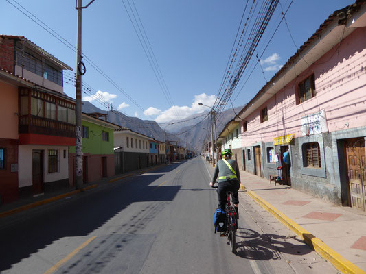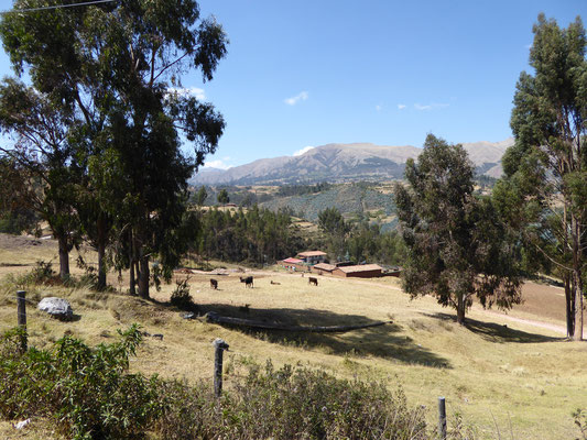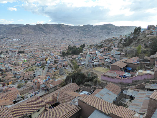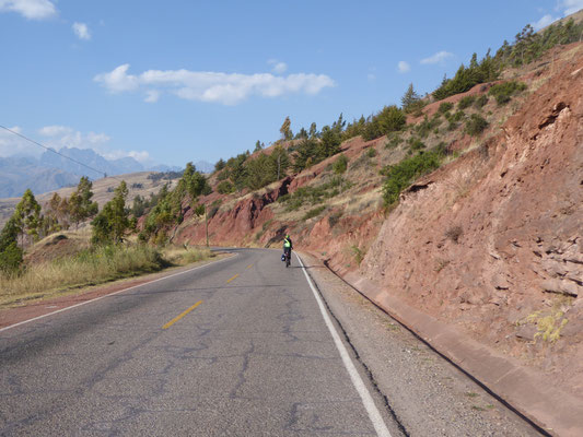 Cusco zu verlassen war die erste Herausforderung. Es ging über eine stark befahrene Ausfallstraße erstmal 350 Höhenmeter hinauf bis es verkehrstechnisch ruhiger wurde. Mittlerweile weiß man die strengen westlichen Abgasnormen zu schätzen. Neben dem normalen Staub, der in der jetzigen Trockenzeit alles bedeckt, kommt noch der Feinstaub aus den Abgasanlagen der Fahrzeuge. Die LKW, Busse und Pickups blasen kontinuierlich kleine schwarze Wolken aus.
