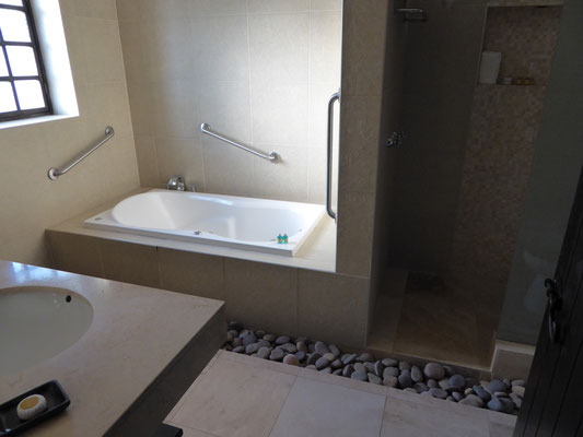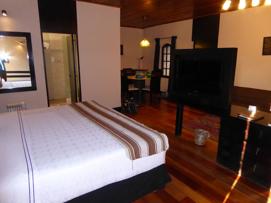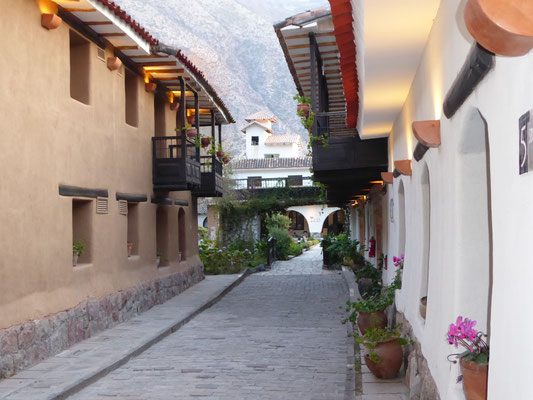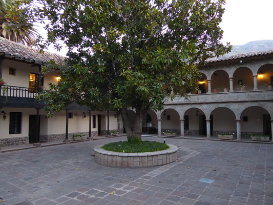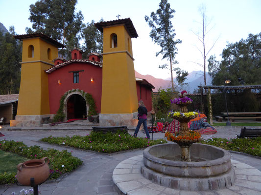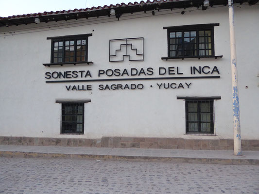 Die Nacht in Yucay verbrachten wir in einem zum Hotel umgebauten Kloster. Die Unterkunft hatten wir zusammen mit unserem Flug von Deutschland nach Peru gebucht. Als "Paket" wurde der Flug so ein Drittel günstiger. Das Hotel hatte extrem große Zimmer und wir konnten zum ersten Mal warm duschen. Im Hotelrestaurant gab es nach einer köstlichen Suppe Andenforelle für Britta und Alpakafilet für mich.