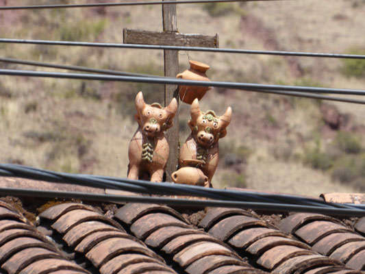 Am Sonntag ging es dann durch das heilige Tal der Inka weiter bis Pisaq. Auf den Hausdächern sind häufig zwei Rinderfiguren angebracht, die dem Haus und seinen Bewohnern Glück bringen sollen.