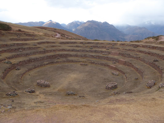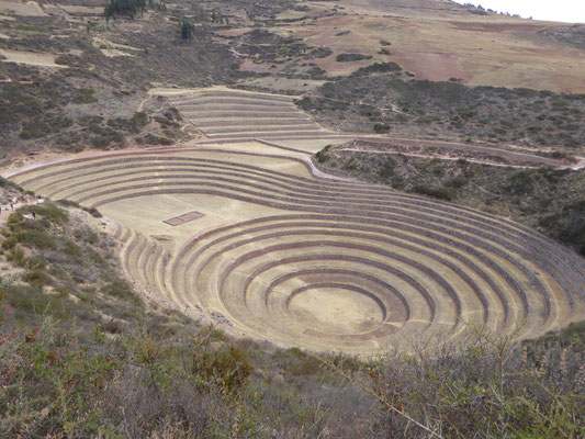 Bei Moray sind bis zu 30m tiefe Terrassenanlagen zu besichtigen, die einen Durchmesser bis zu 150m aufweisen. Ihre Bedeutung ist wie wohl alles aus der Inkazeit unklar. Manche Fachleute halten es für Ackerbauanlagen, andere für Stätten religiöser Zeremonien.