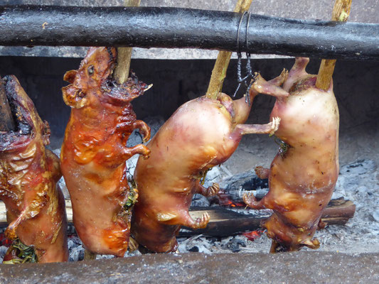 Unser erster Versuch Meerschweinchen zu kosten, schlägt fehl. Wir erhalten richtiges Schwein.